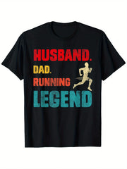Inform when this item available Funny Running Dad Husband Marathon Graphic T-Shirt - Black Cotton Tee with Bold Color Block Print