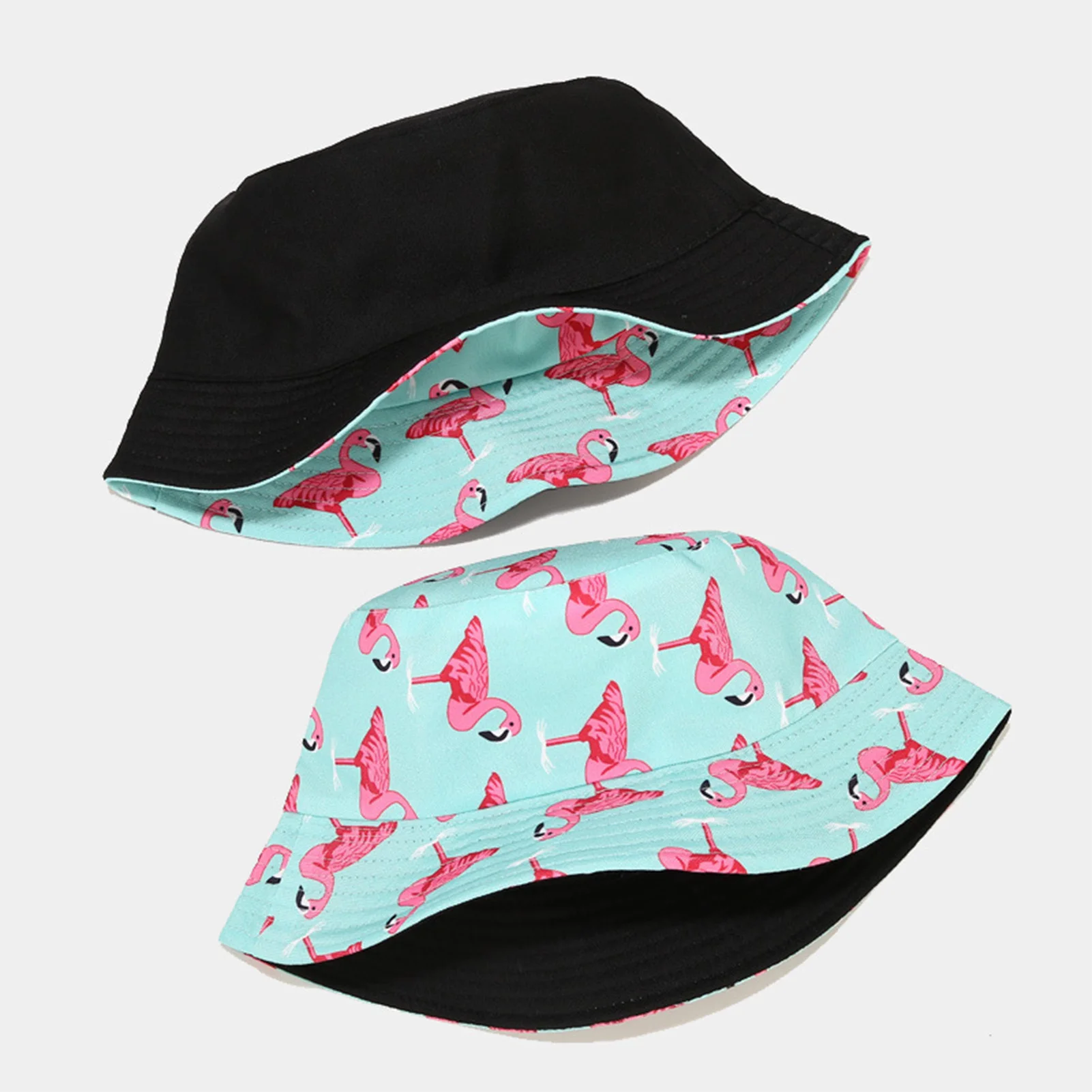 Flamingos Pattern Bucket Hats Outdoor Breathable Summer Flamingos Printed Hats for Home Office Travel Hiking MIAO-US - black / United States